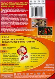 Disc 2: "Jack-Jack Attack" --Jack-Jack Challenges Kari The Babysitter In An Exclusive, All-New Animated Short he Academy Award(R) Nominated Pixar Animation Studios Short Film "Boundin.'" "Incredi-Blunders" Bloopers And Outtakes Deleted Scenes And Alternate Opening Top Secret Files On All The Supers Behind-The-Scenes And Much More! |